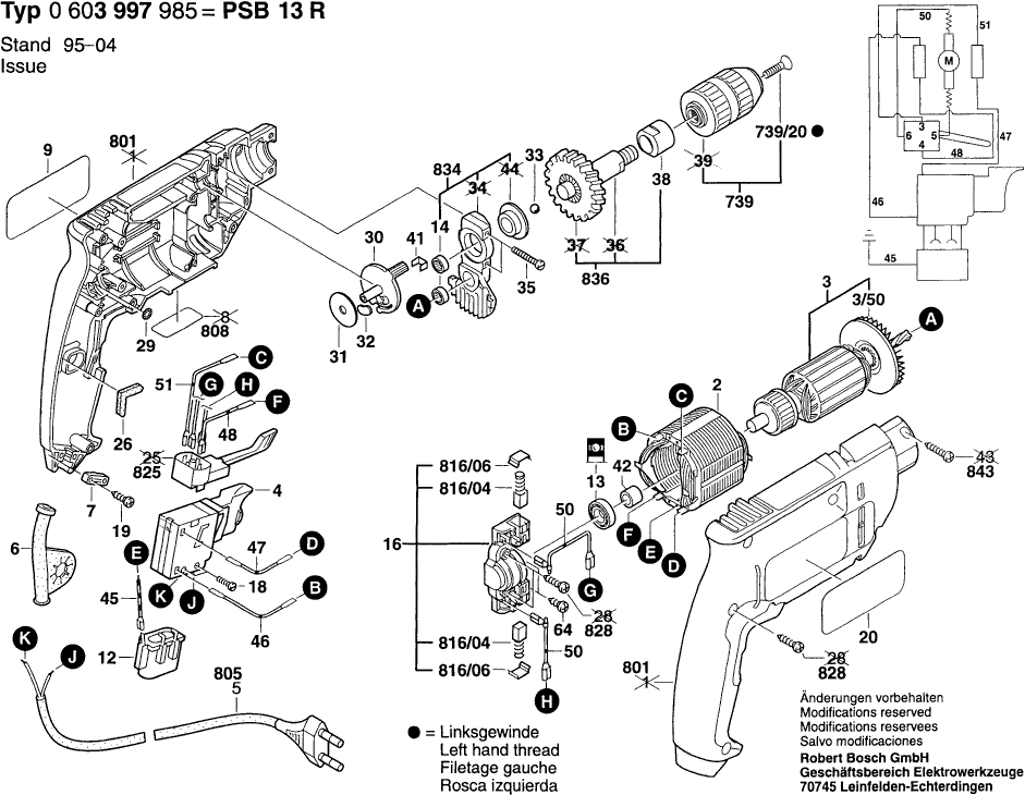 Lista de las piezas de repuesto de Bosch 0603997985 ( PSB13R )