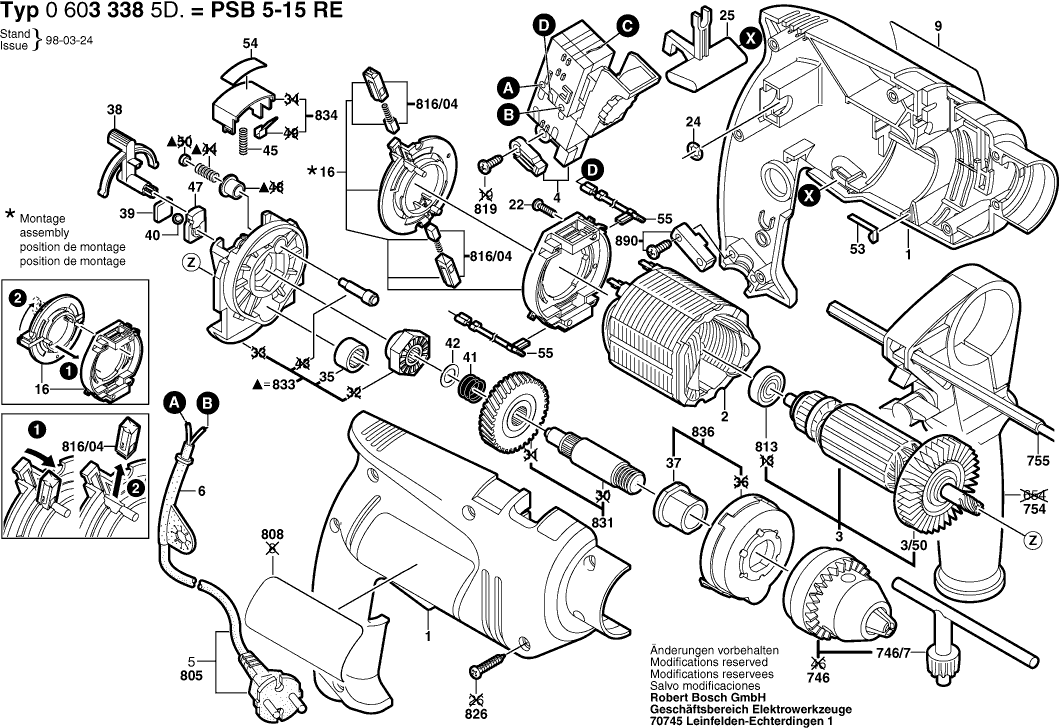 Lista de las piezas de repuesto de Bosch 06033385D7 ( PSB5-15RE )
