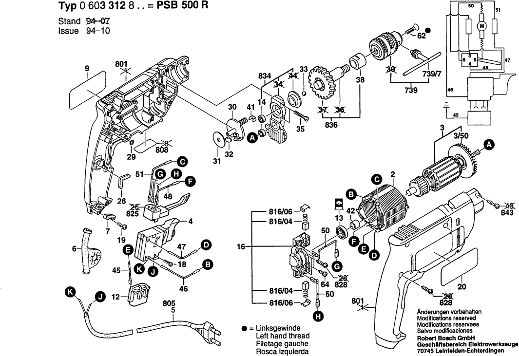 Lista de las piezas de repuesto de Bosch 0603312808 ( PSB500R )