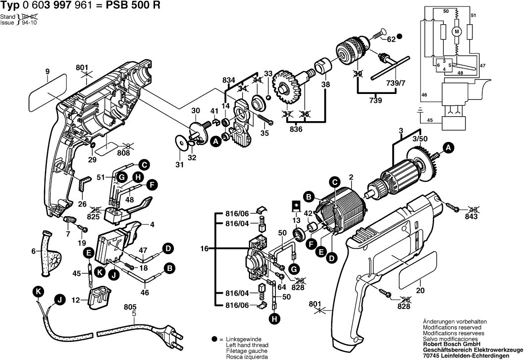 Lista de las piezas de repuesto de Bosch 0603997961 ( PSB500R )
