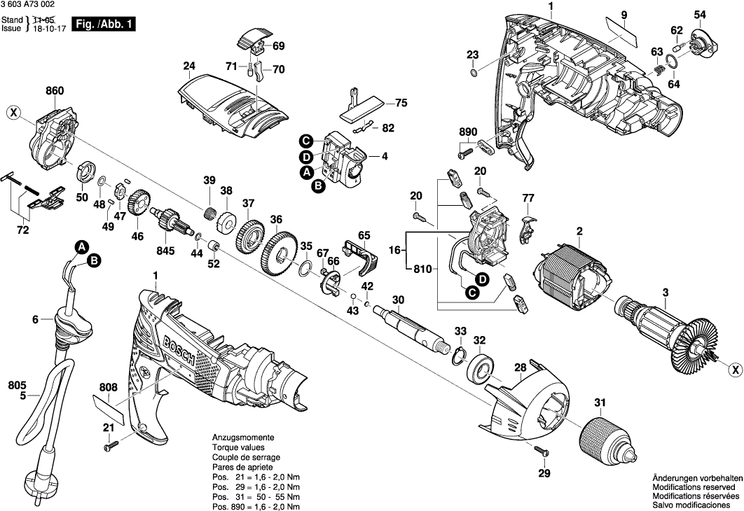 Dibujo técnico de los/las Bosch 3603A73003 ( PSB850-2RE )