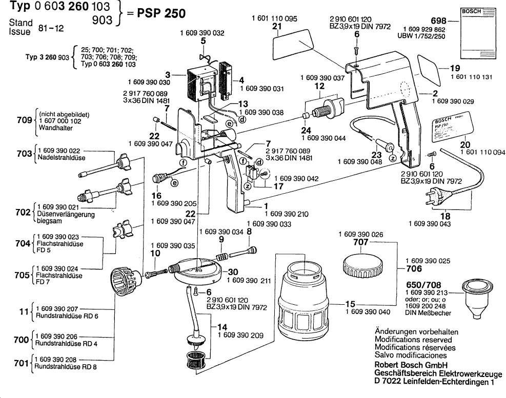 Lista de las piezas de repuesto de Bosch 0603260103 ( PSP250 )