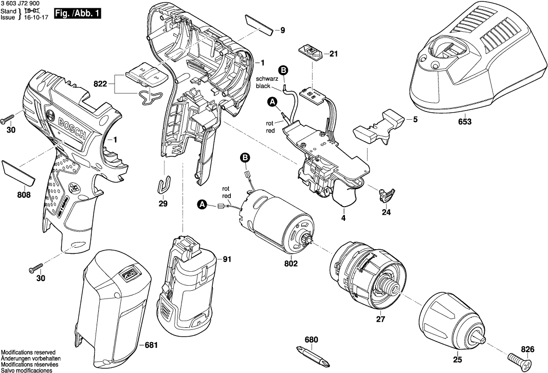 Lista de las piezas de repuesto de Bosch 3603J72901 ( PSR10,8LI-2 )