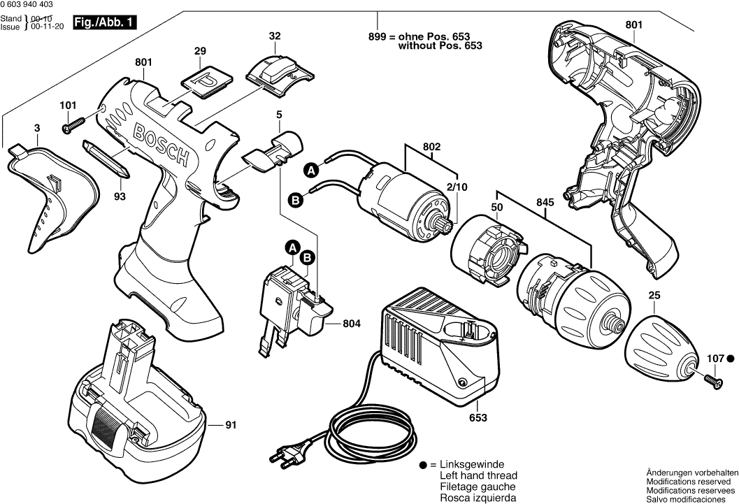 Lista de las piezas de repuesto de Bosch 0603940403 ( PSR14,4VE-2 )