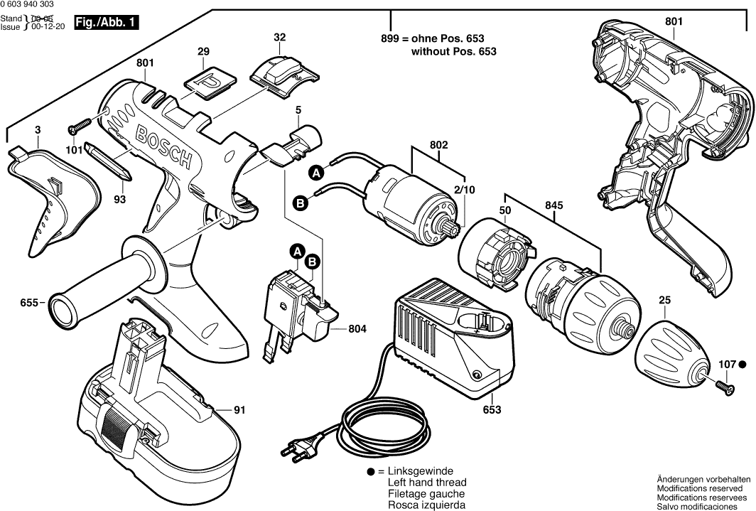 Lista de las piezas de repuesto de Bosch 0603940367 ( PSR18VE-2 )