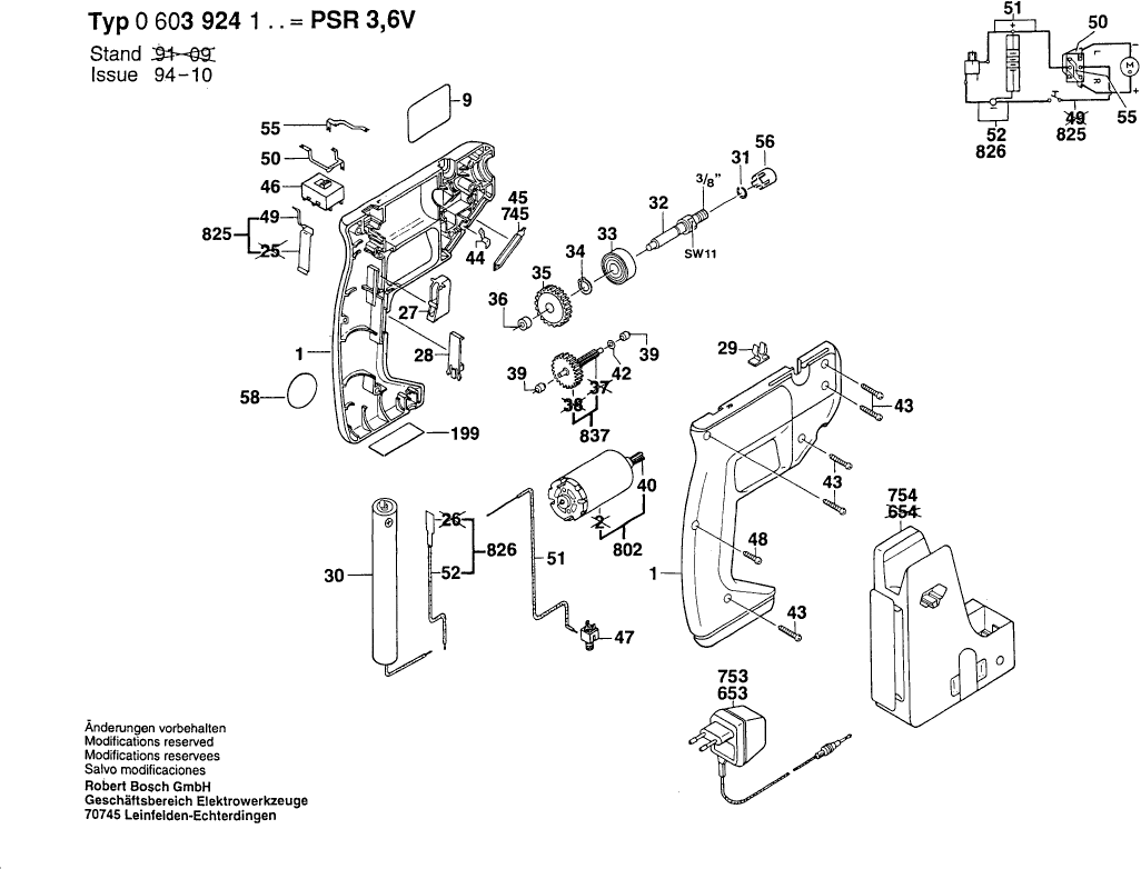 Lista de las piezas de repuesto de Bosch 0603924103 ( PSR3,6V )