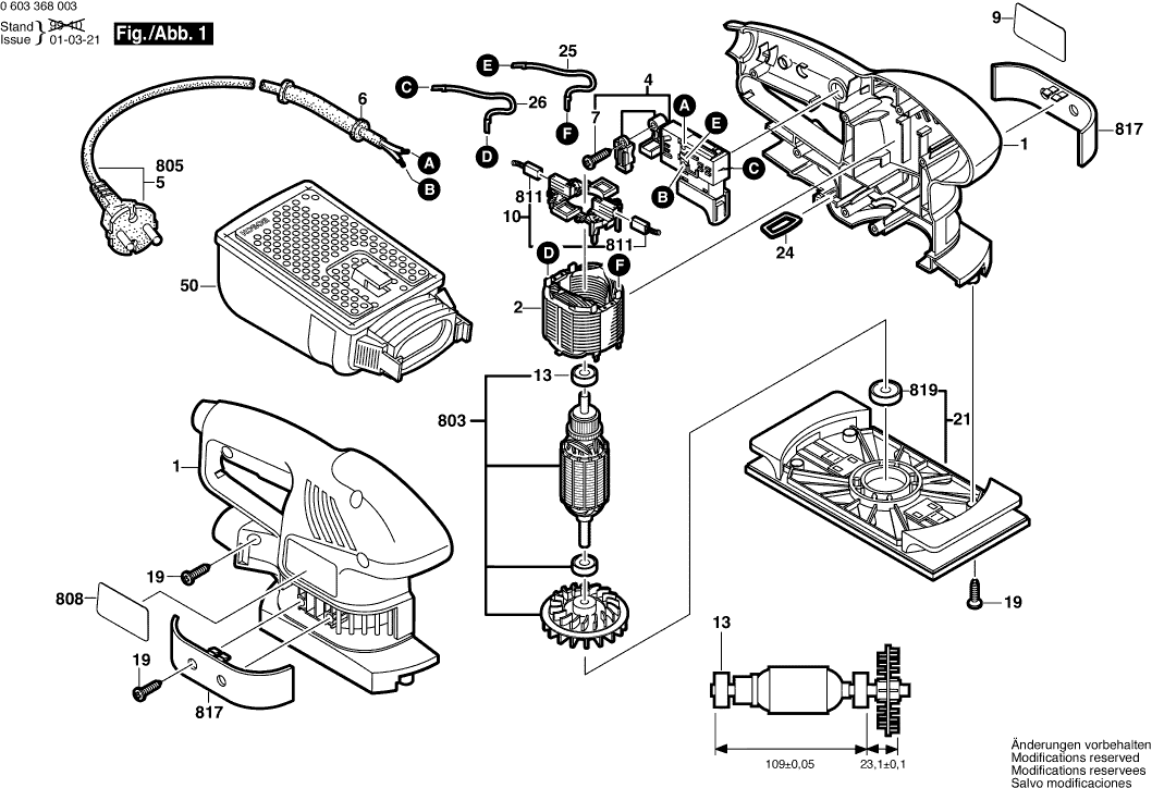 Aquí encontrará todas las piezas y dibujos técnicos disponibles de 'Bosch 0603368003 ( PSS240A )'. Desde aquí podrá pedir todas las piezas deseadas directamente. Para muchas piezas de repuesto, es necesario pasar un pedido al fabricante. Dependiendo de la marca, el plazo de entrega puede variar entre una y cuatro semanas. Toda la información que tenemos está en nuestro sitio web. No podremos aconsejarle sobre lo que necesita hasta que entregue la máquina para su reparación. Tenga en cuenta lo siguiente a la hora de cursar su pedido:
