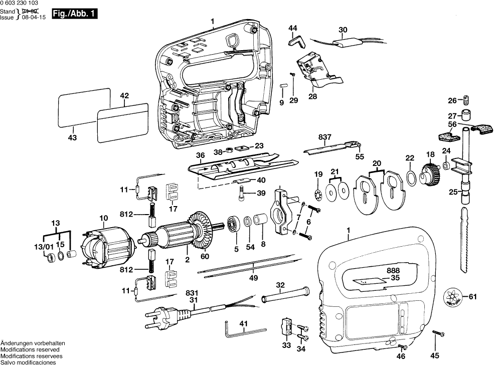 Aquí encontrará todas las piezas y dibujos técnicos disponibles de 'Bosch 0603230103 ( PST50 )'. Desde aquí podrá pedir todas las piezas deseadas directamente. Para muchas piezas de repuesto, es necesario pasar un pedido al fabricante. Dependiendo de la marca, el plazo de entrega puede variar entre una y cuatro semanas. Toda la información que tenemos está en nuestro sitio web. No podremos aconsejarle sobre lo que necesita hasta que entregue la máquina para su reparación. Tenga en cuenta lo siguiente a la hora de cursar su pedido:
