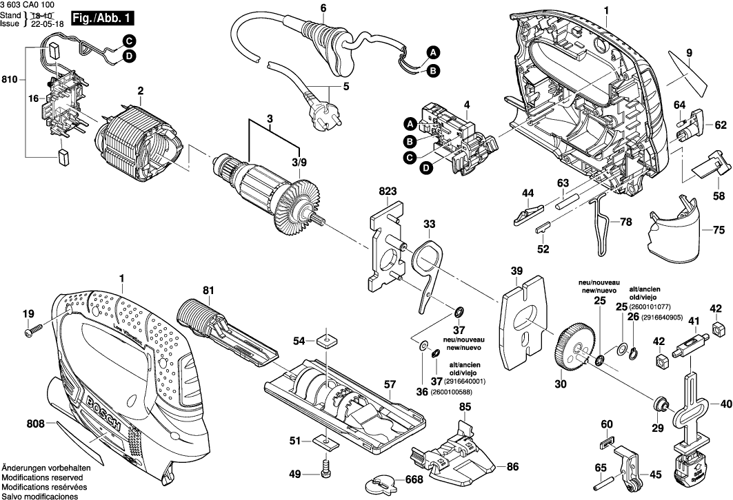 Lista de las piezas de repuesto de Bosch 3603CA0503 ( PST750PE )