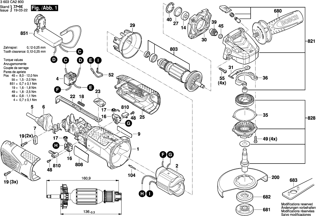 Lista de las piezas de repuesto de Bosch 3603CA2800 ( PWS1000-125CE )