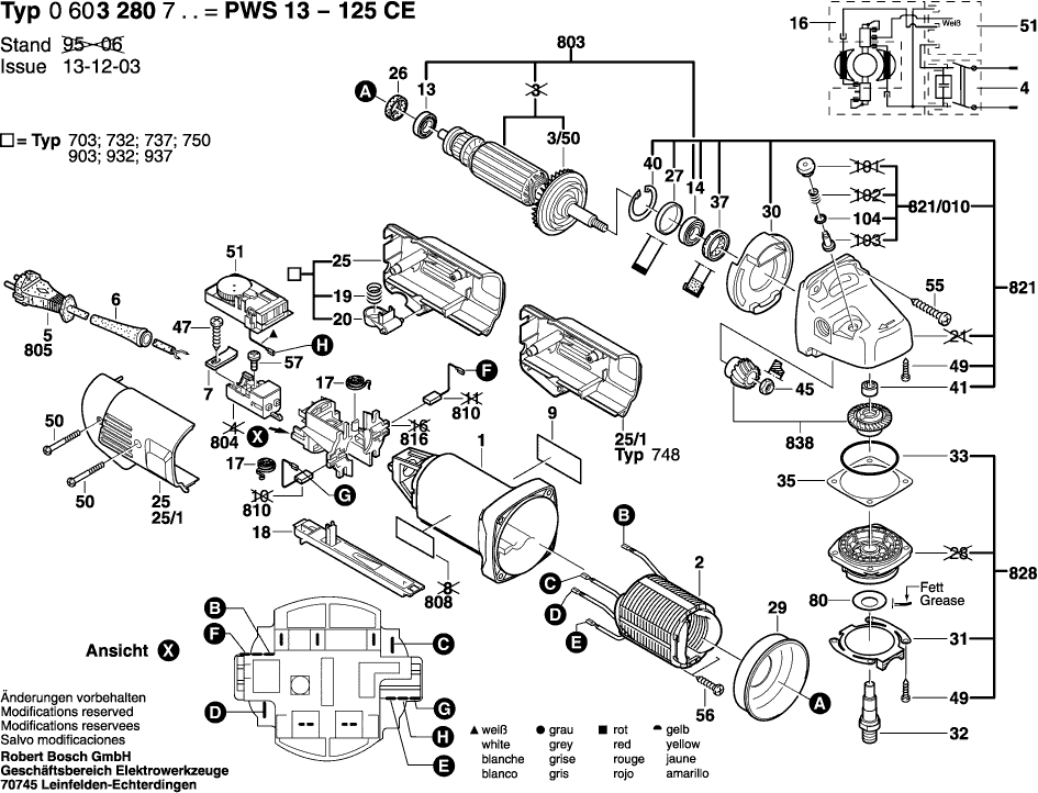 Lista de las piezas de repuesto de Bosch 0603280703 ( PWS13-125CE )
