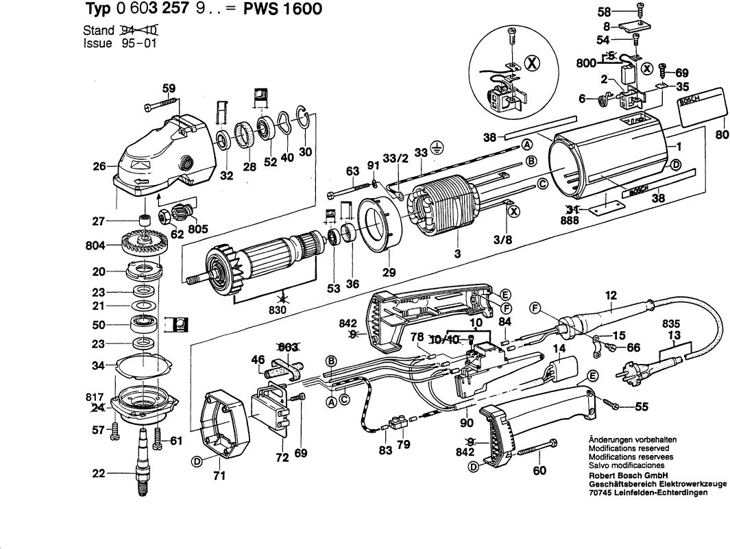 Lista de las piezas de repuesto de Bosch 0603257903 ( PWS1600 )