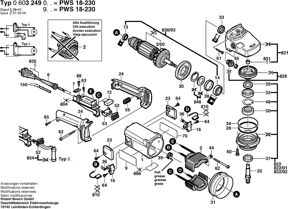 Lista de las piezas de repuesto de Bosch 0603249003 ( PWS18-230 )