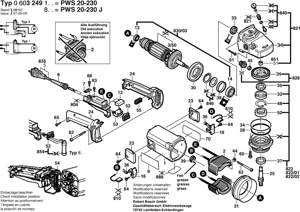 Lista de las piezas de repuesto de Bosch 0603249103 ( PWS20-230 )