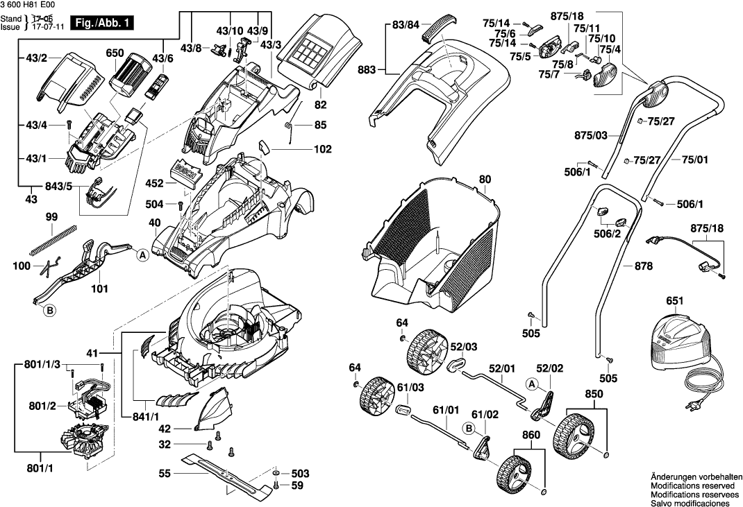Aquí encontrará todas las piezas y dibujos técnicos disponibles de 'Bosch 3600H81E01 ( ROTAK34LI )'. Desde aquí podrá pedir todas las piezas deseadas directamente. Para muchas piezas de repuesto, es necesario pasar un pedido al fabricante. Dependiendo de la marca, el plazo de entrega puede variar entre una y cuatro semanas. Toda la información que tenemos está en nuestro sitio web. No podremos aconsejarle sobre lo que necesita hasta que entregue la máquina para su reparación. Tenga en cuenta lo siguiente a la hora de cursar su pedido: