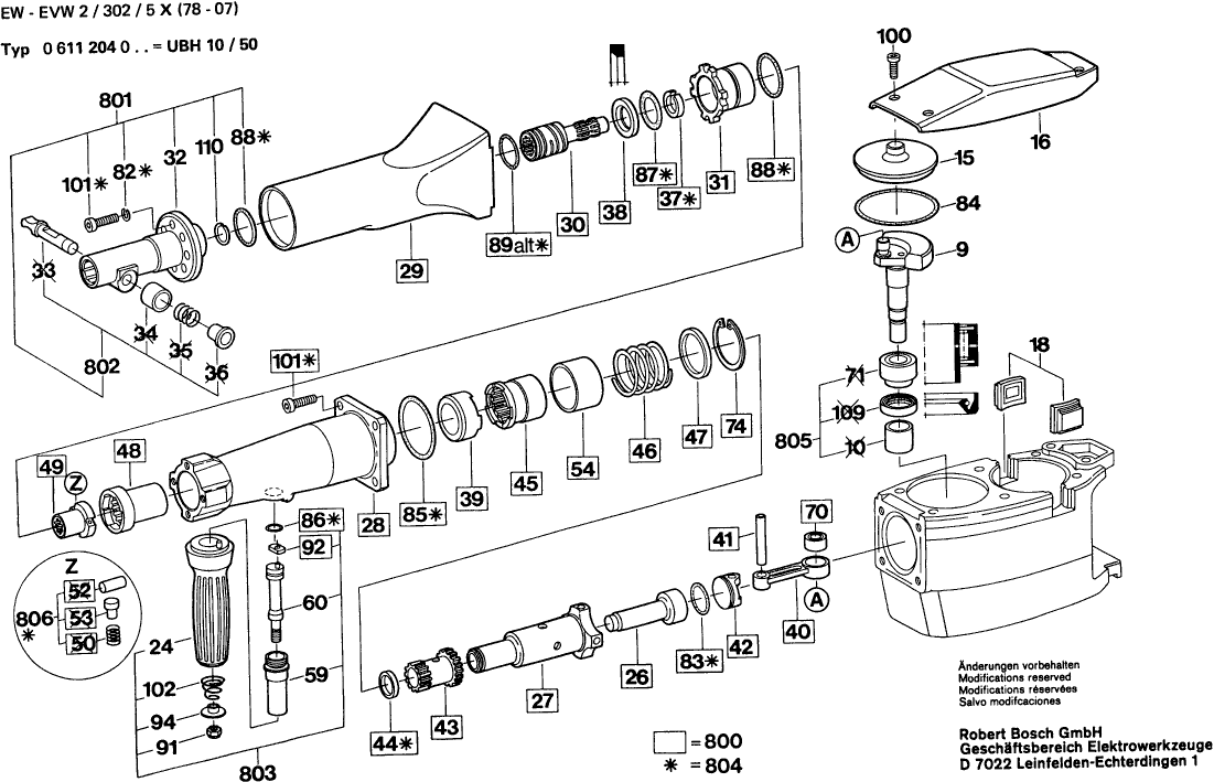 Lista de las piezas de repuesto de Bosch 0611204013 ( UBH10/50 )
