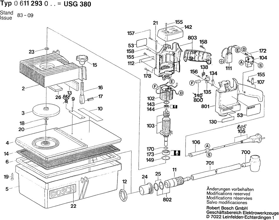 Lista de las piezas de repuesto de Bosch 0611293003 ( USG380 )