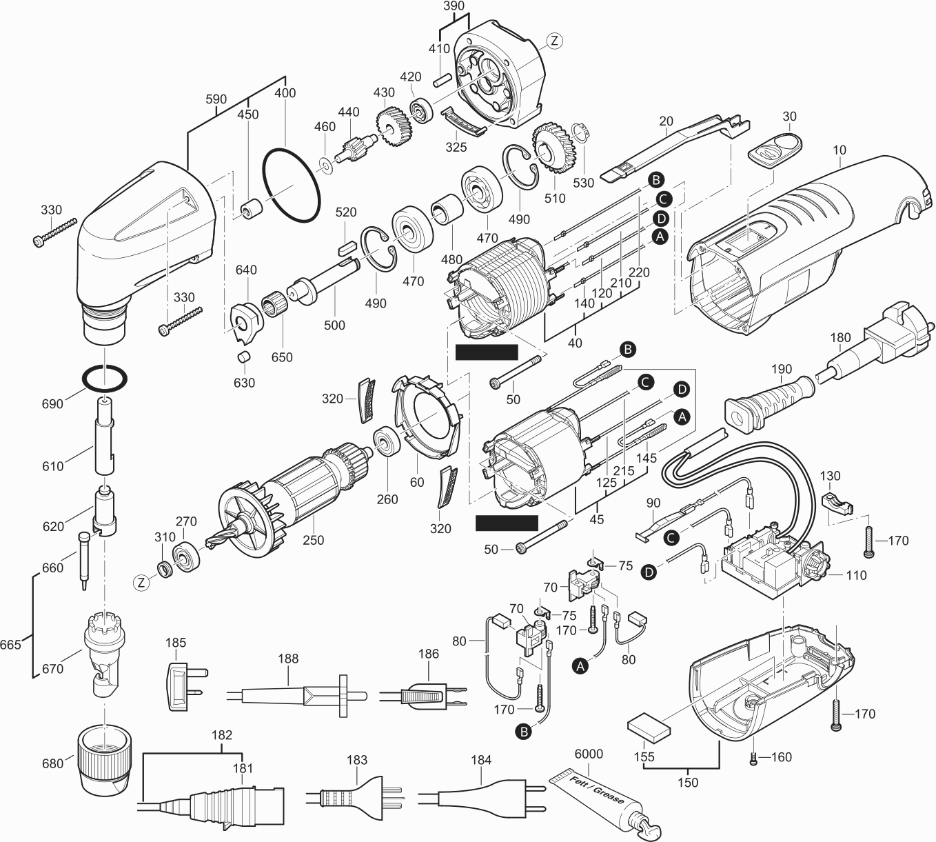 Lista de las piezas de repuesto de Fein 72324200230 ( BLK1.3CSE )
