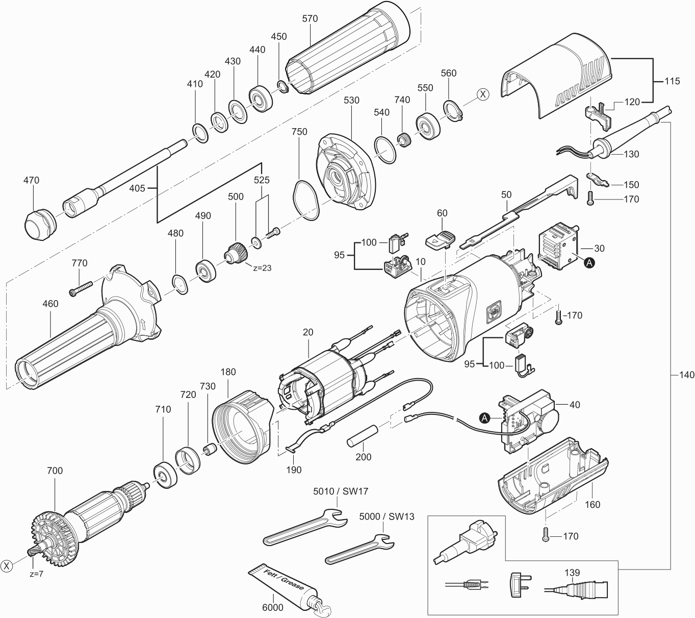 Lista de las piezas de repuesto de Fein 72232000230 ( GSZ8-90PEL )