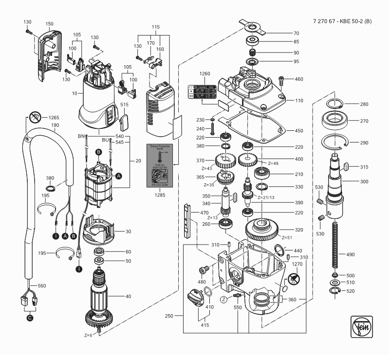 Lista de las piezas de repuesto de Fein 72706700230 ( KBE50- )