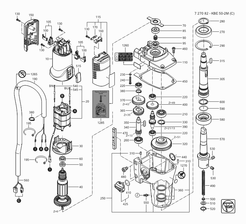 Lista de las piezas de repuesto de Fein 72708200230 ( KBE50-2M )