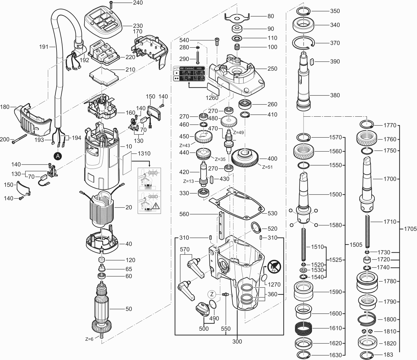 Lista de las piezas de repuesto de Fein 72707700230 ( KBM50auto )