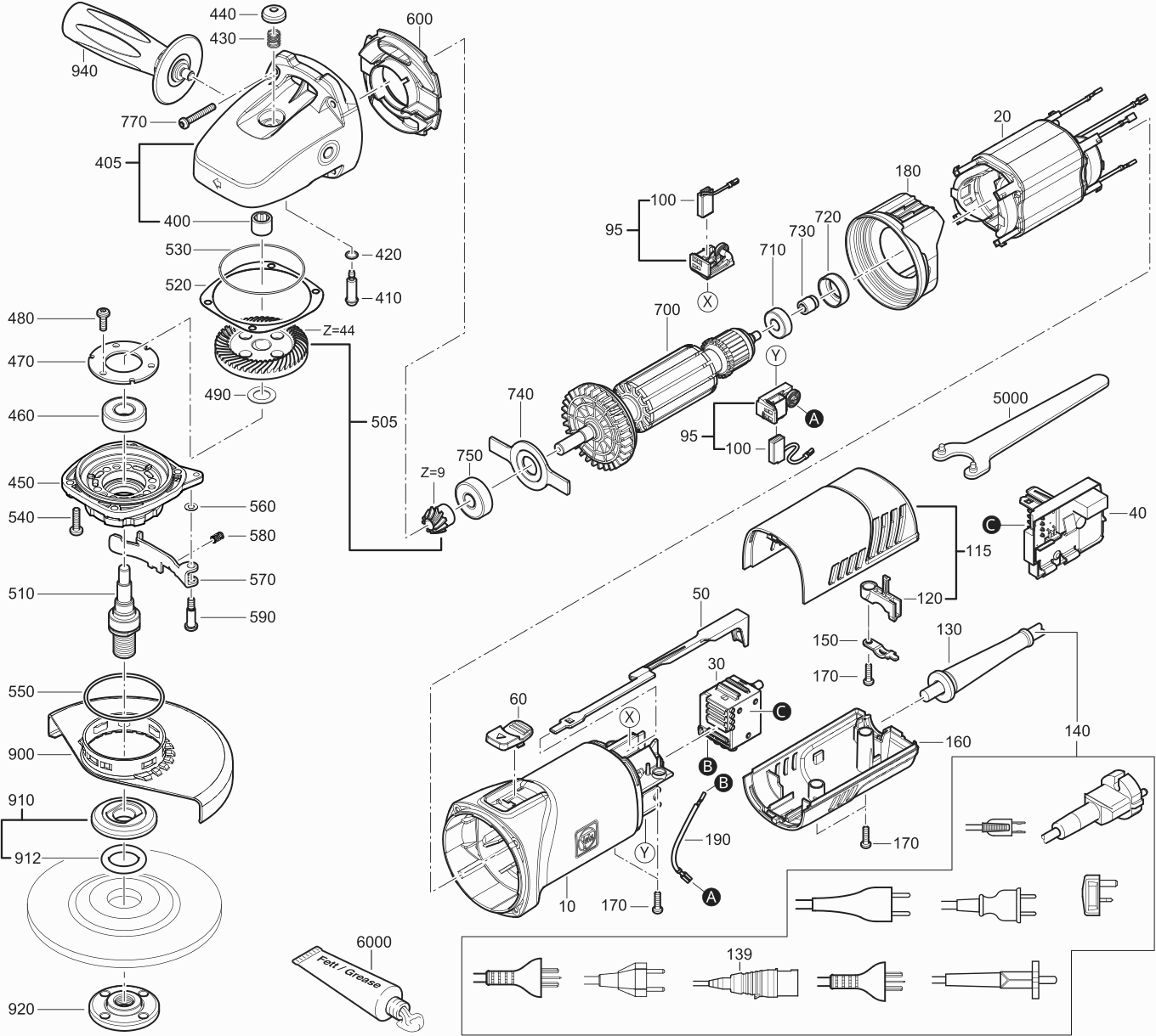 Lista de las piezas de repuesto de Fein 72224200230 ( WSG17-150 )