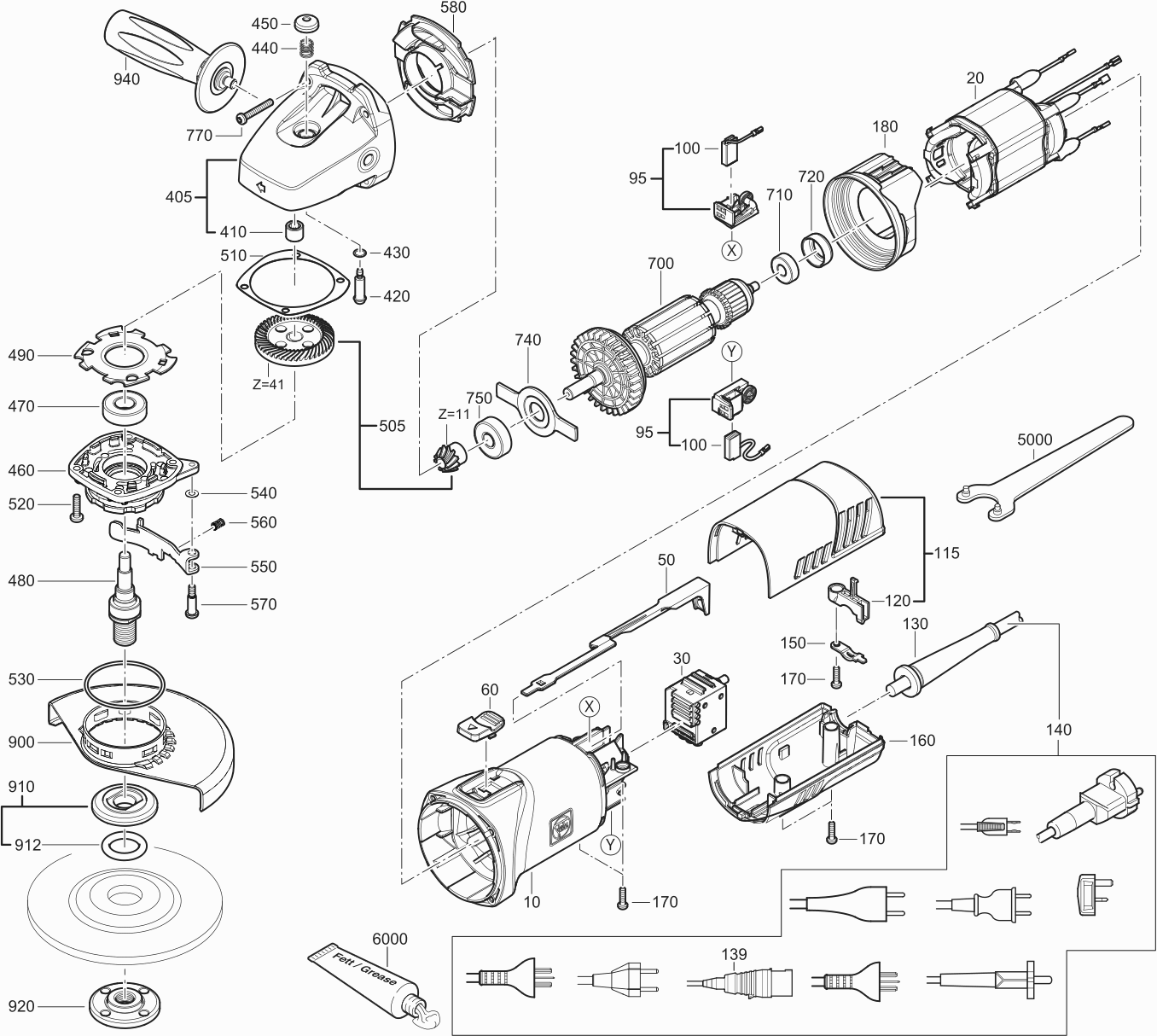 Lista de las piezas de repuesto de Fein 72220100230 ( WSG8-11 )