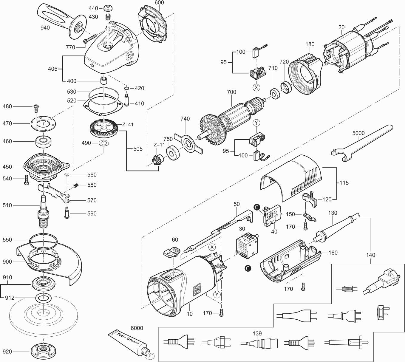Lista de las piezas de repuesto de Fein 72223400230 ( WSG8-11 )