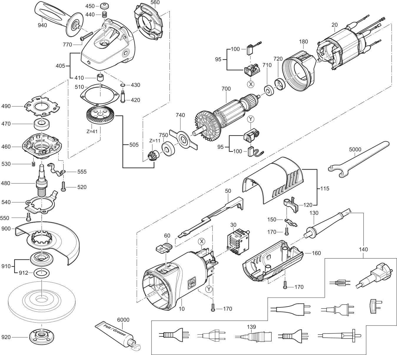 Lista de las piezas de repuesto de Fein 72217430220 ( WSG8-125 )