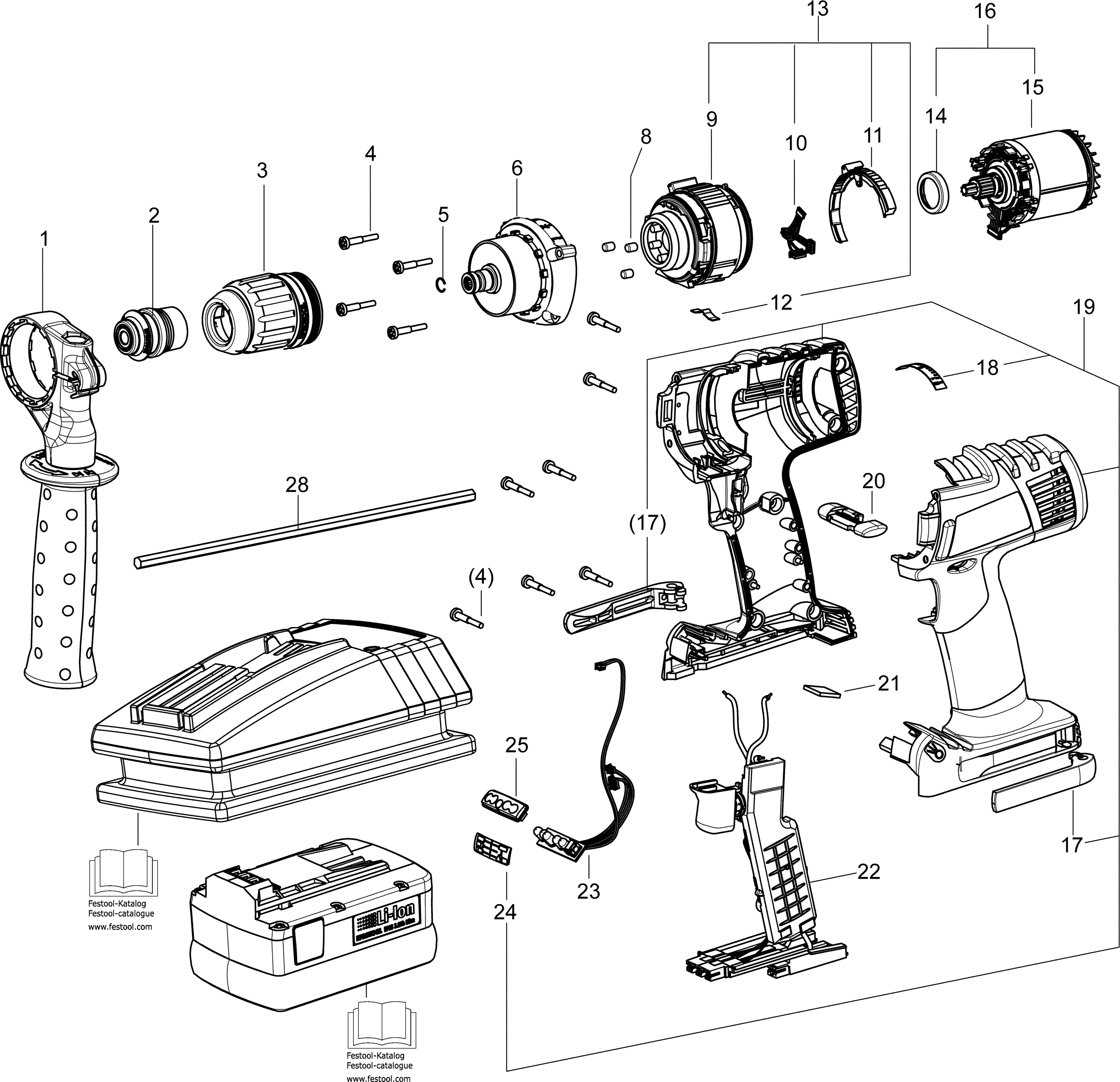 Lista de las piezas de repuesto de Festool 768173 ( DRC18/4 )