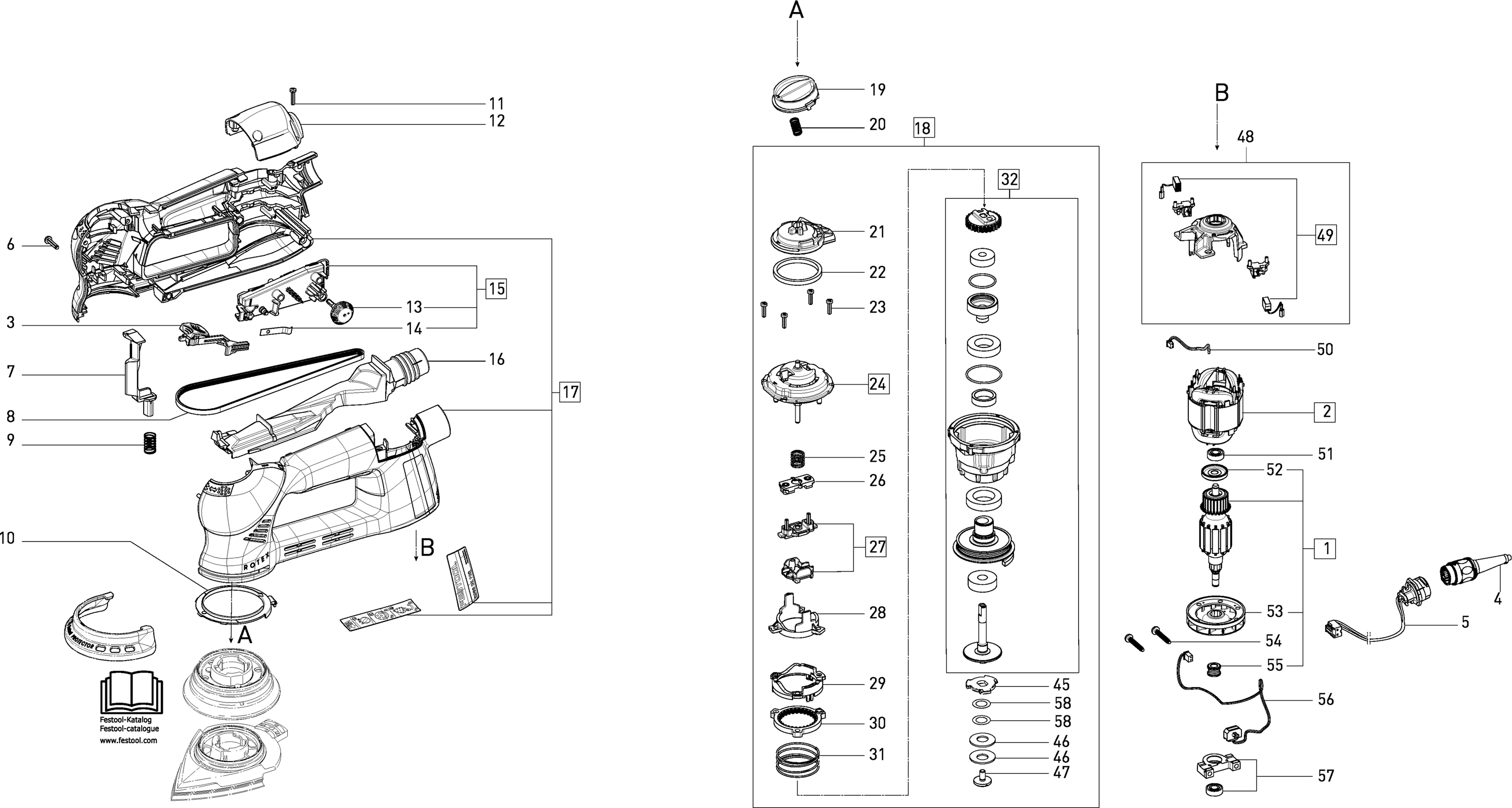 Lista de las piezas de repuesto de Festool 495618 ( RO90DXFEQ230V )