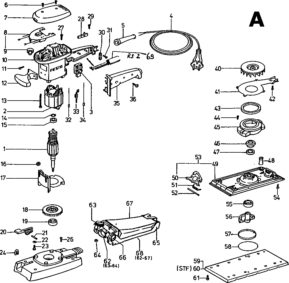 Lista de las piezas de repuesto de Festool 486858 ( RS2ESTF220V )