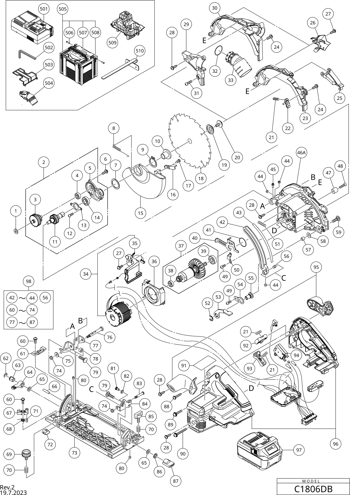 Lista de las piezas de repuesto de Hikoki C1806DB