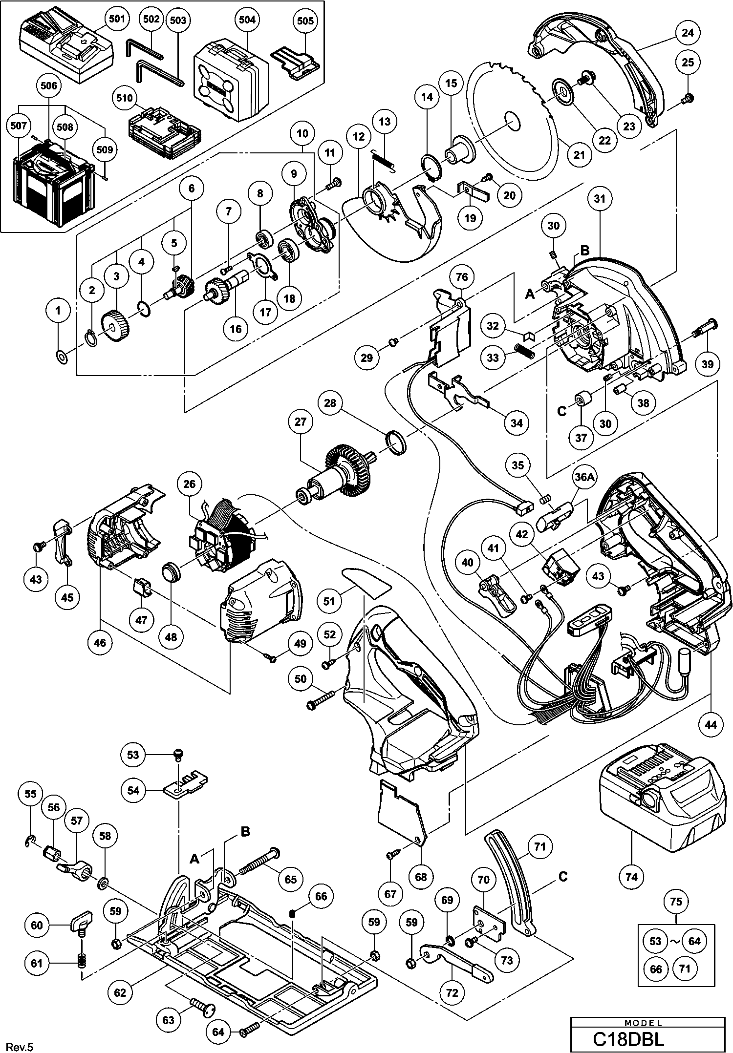 Lista de las piezas de repuesto de Hikoki C18DBL