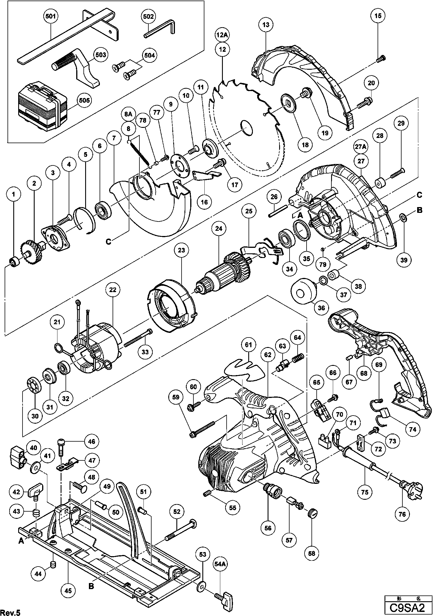 Lista de las piezas de repuesto de Hikoki C9SA2