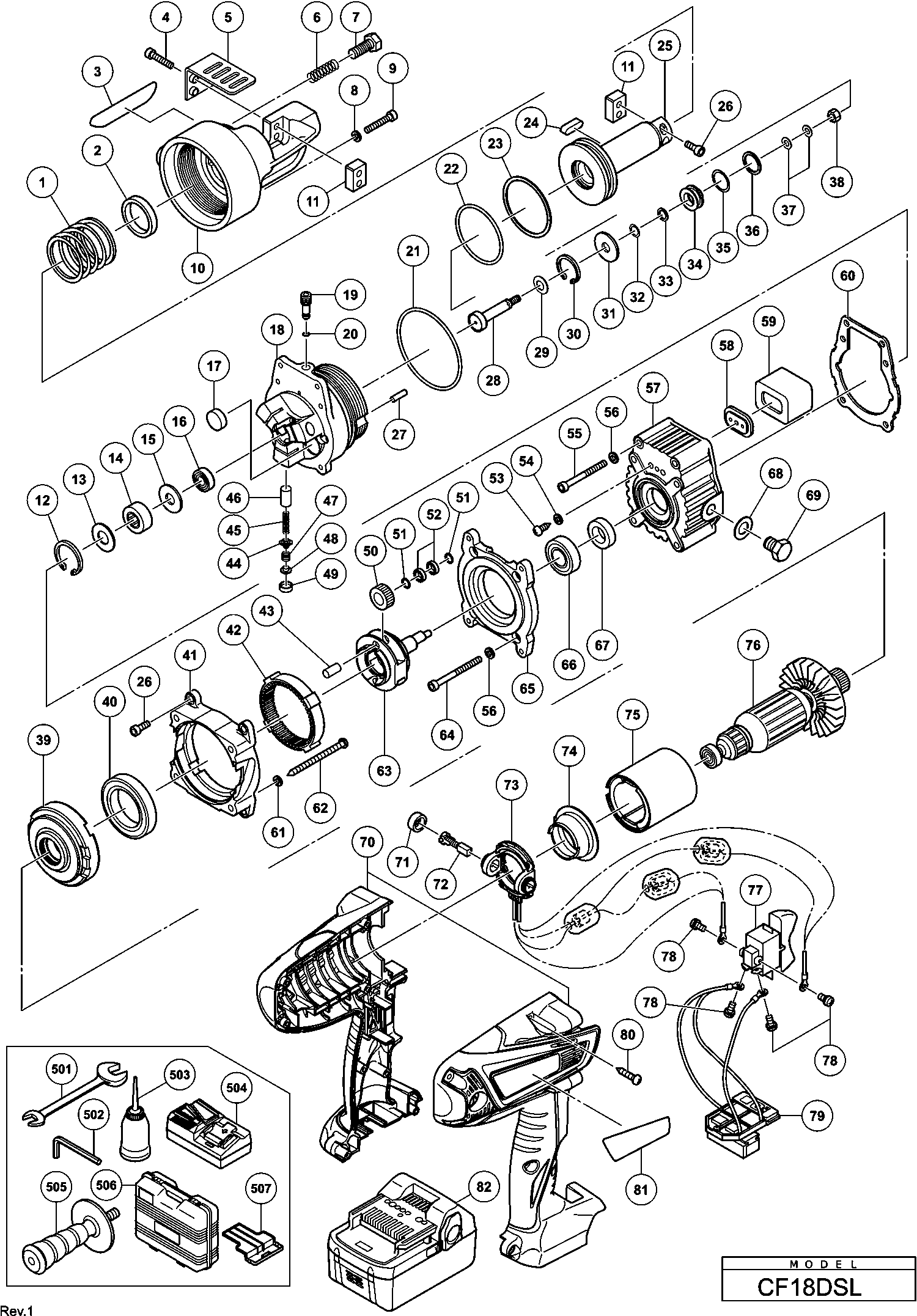 Lista de las piezas de repuesto de Hikoki CF18DSL