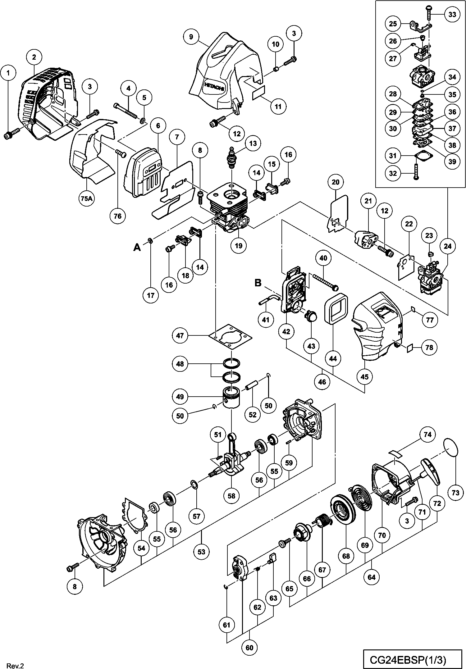 Lista de las piezas de repuesto de Hikoki CG24EBSP