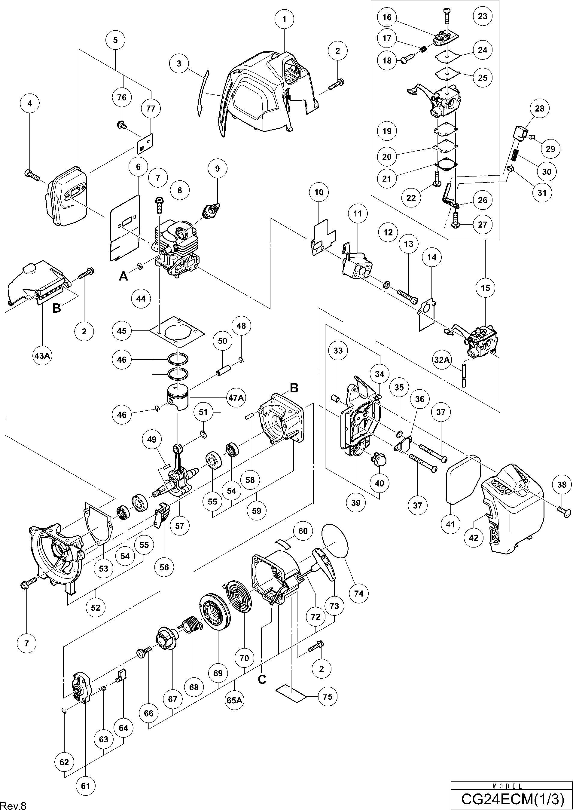 Lista de las piezas de repuesto de Hikoki CG24ECM