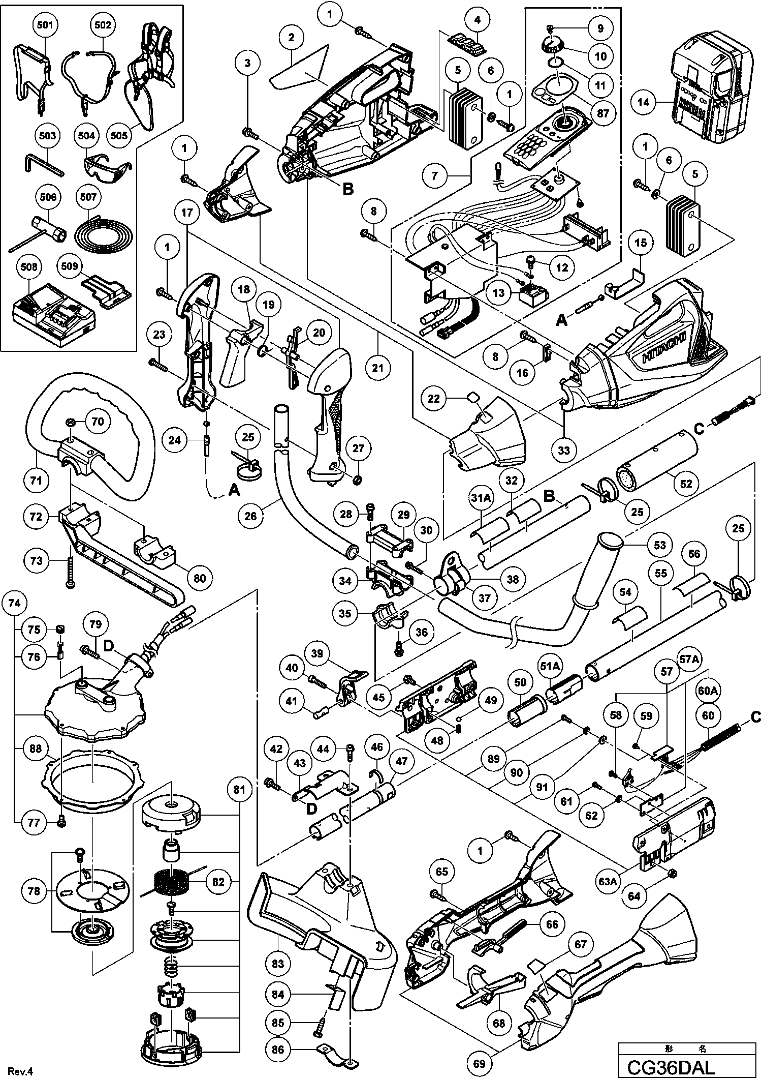 Lista de las piezas de repuesto de Hikoki CG36DAL