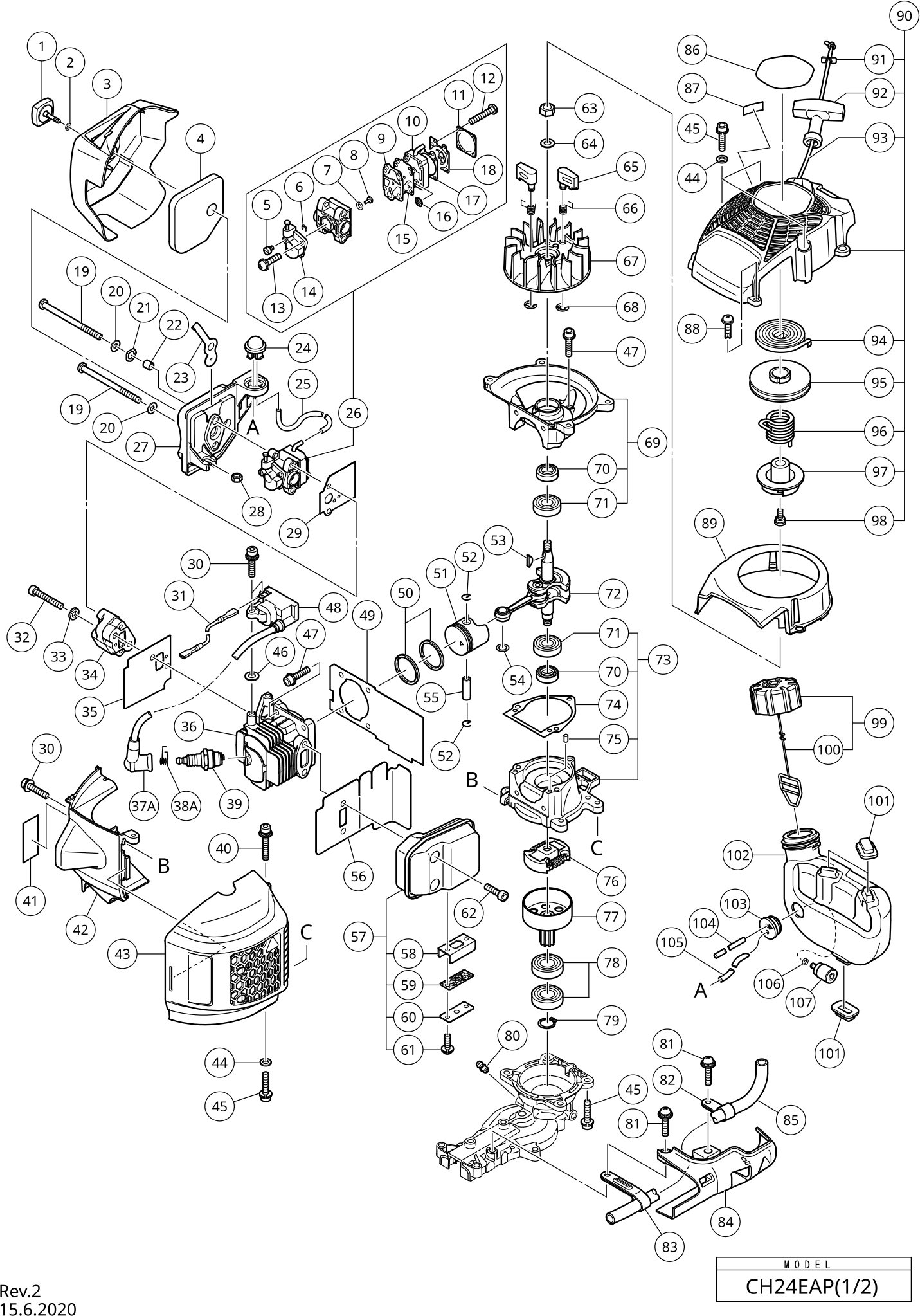 Dibujo técnico de los/las Hikoki CH24EAP