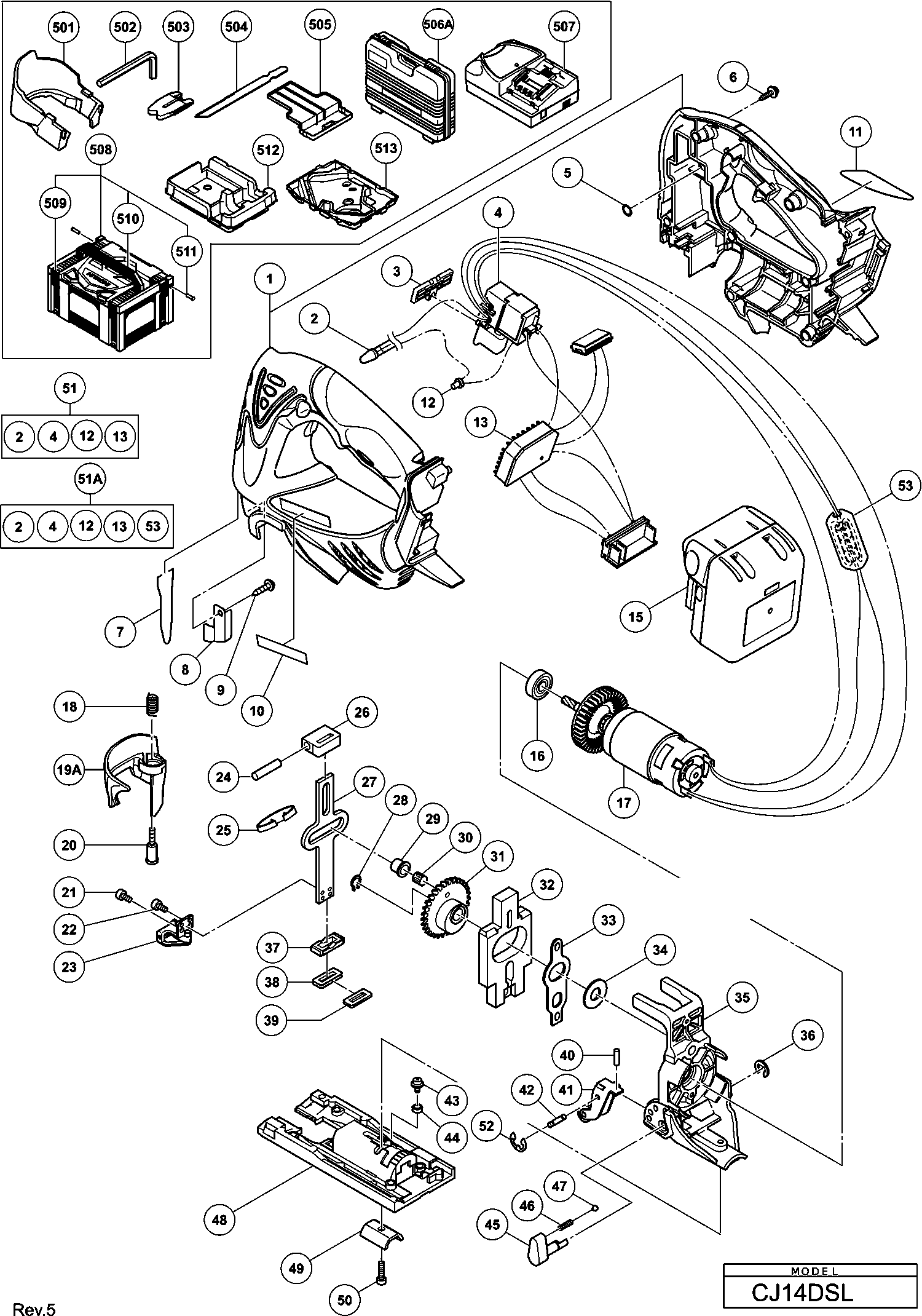 Dibujo técnico de los/las Hikoki CJ14DSL