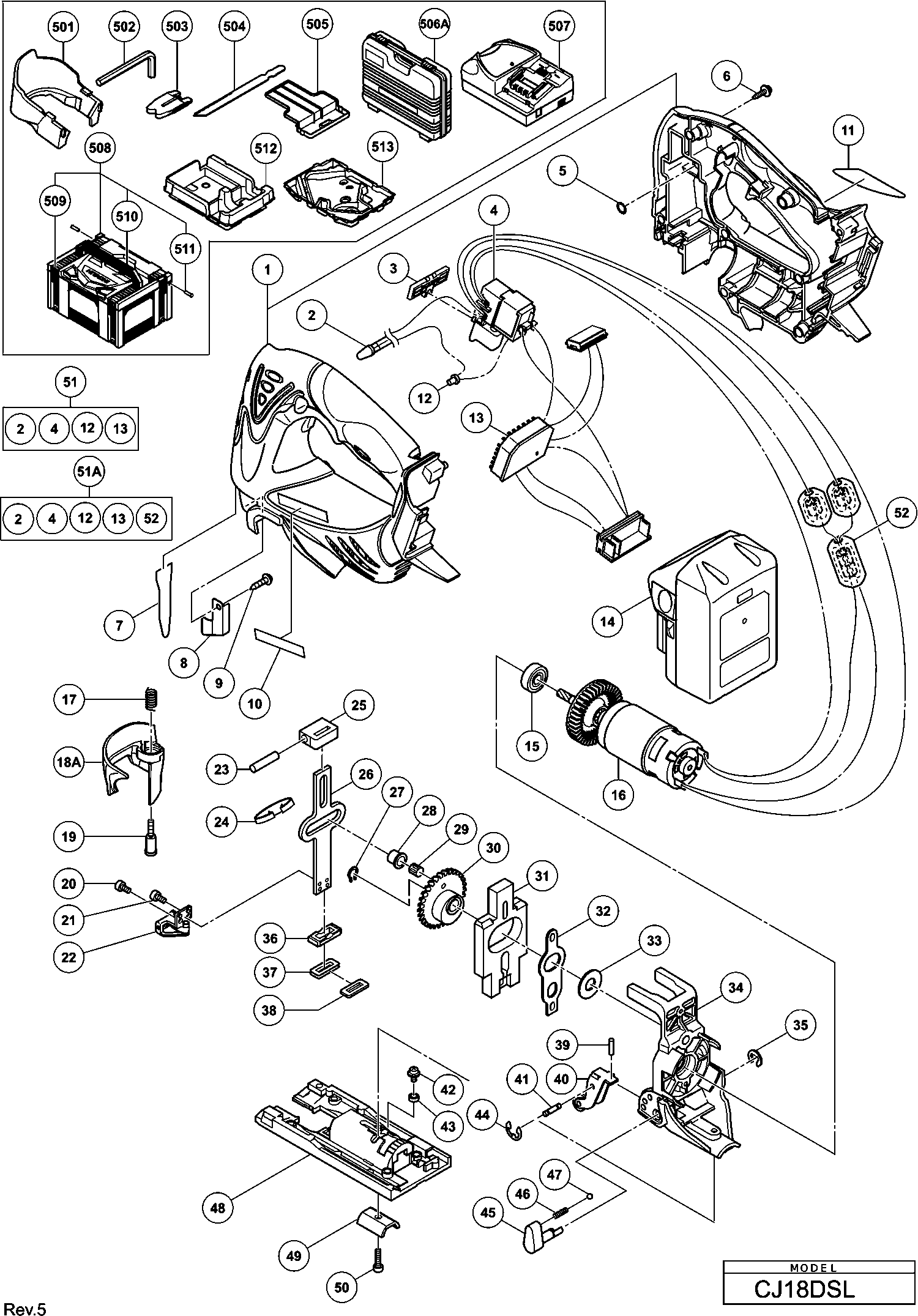 Lista de las piezas de repuesto de Hikoki CJ18DSL