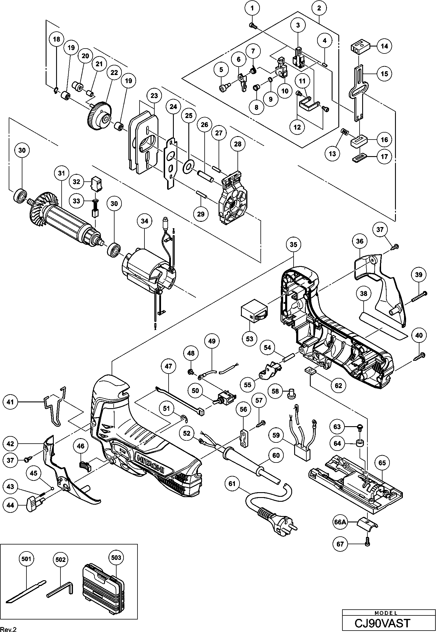 Lista de las piezas de repuesto de Hikoki CJ90VAST