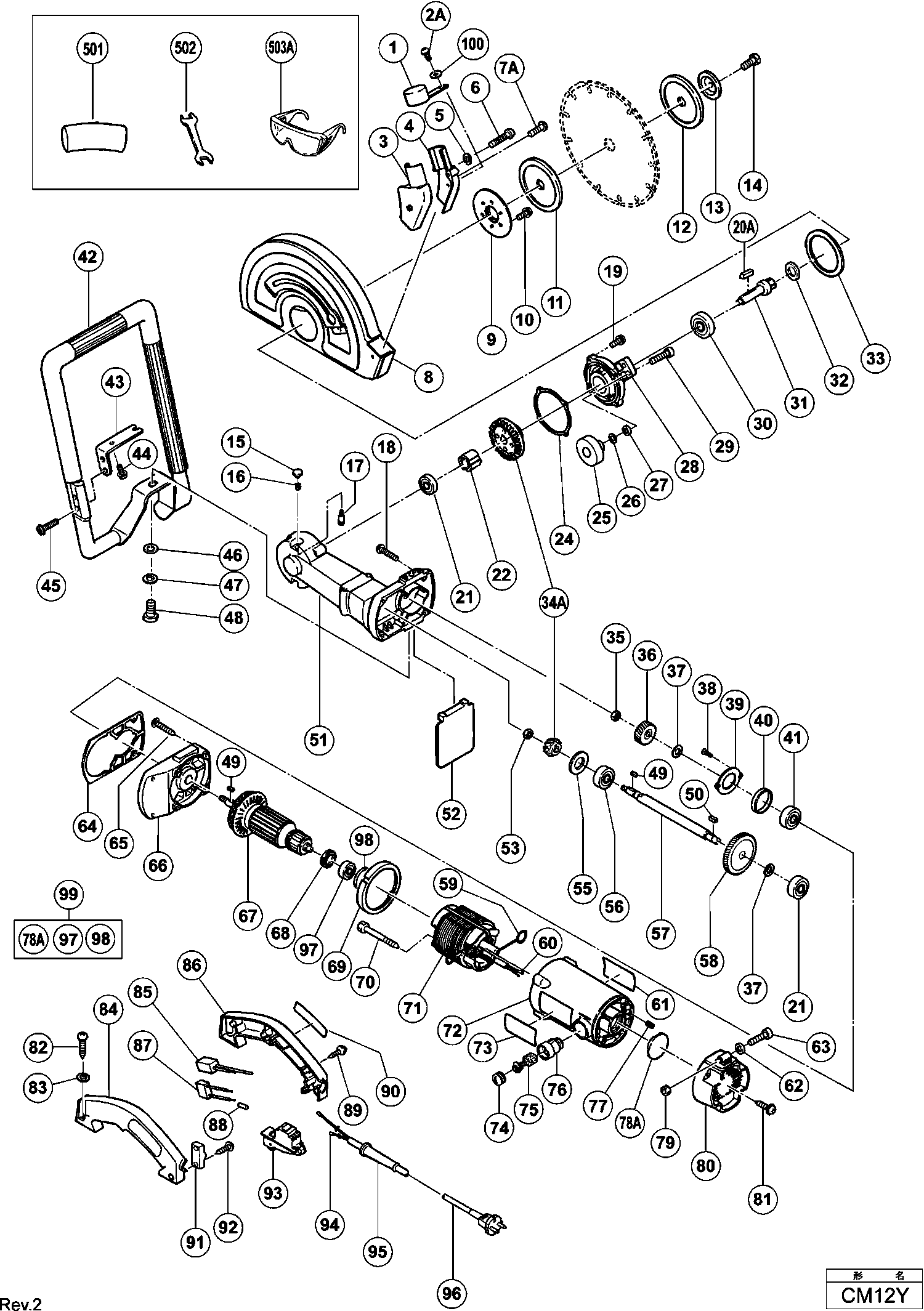 Lista de las piezas de repuesto de Hikoki CM12Y