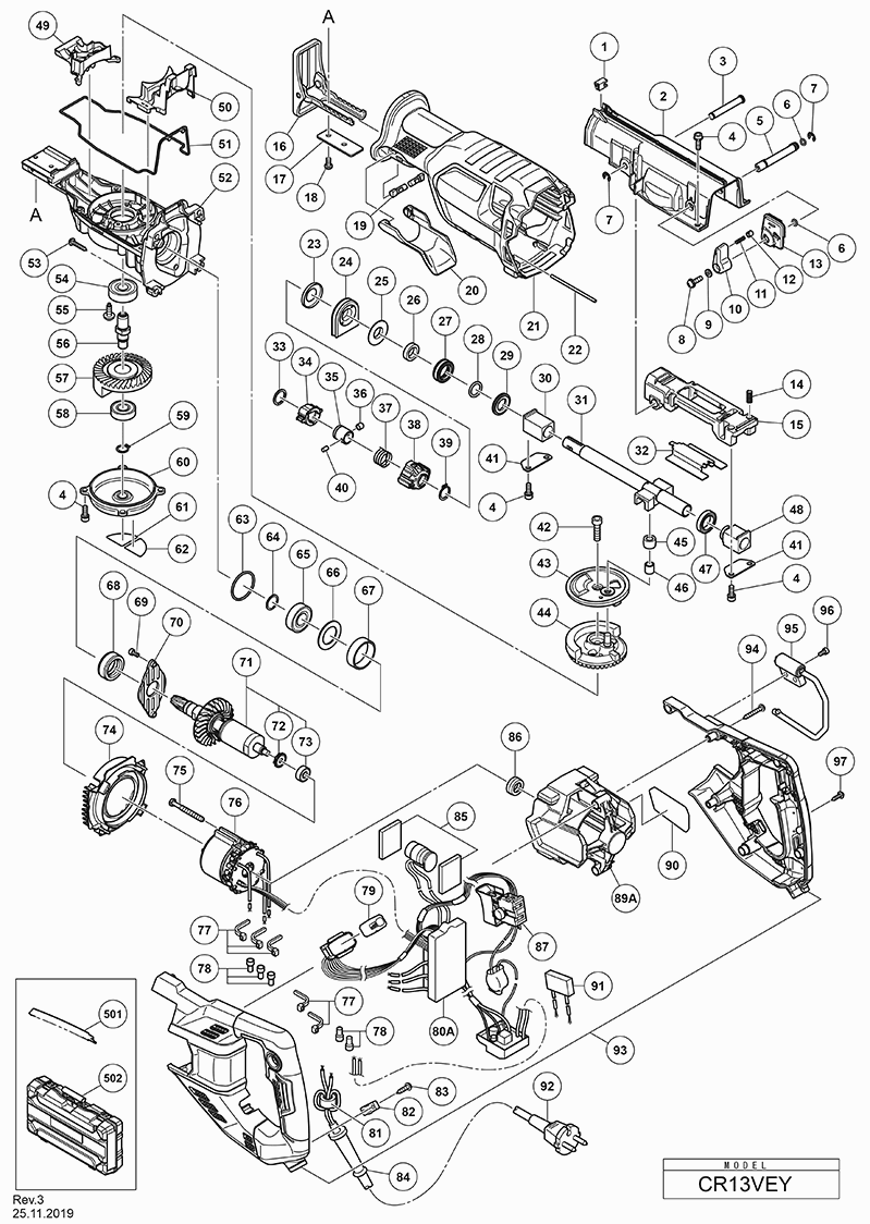 Lista de las piezas de repuesto de Hikoki CR13VEYWSZ