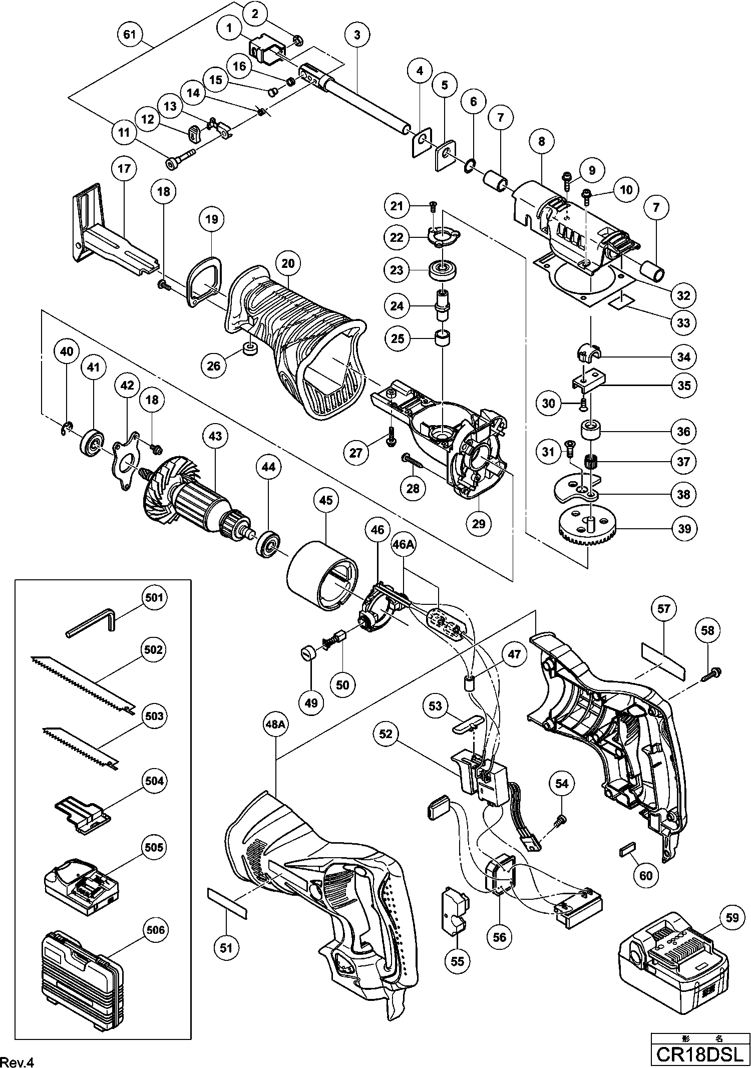 Lista de las piezas de repuesto de Hikoki CR18DSL