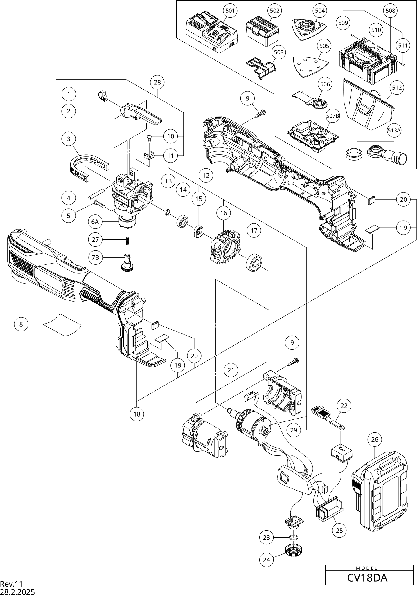 Lista de las piezas de repuesto de Hikoki CV18DA