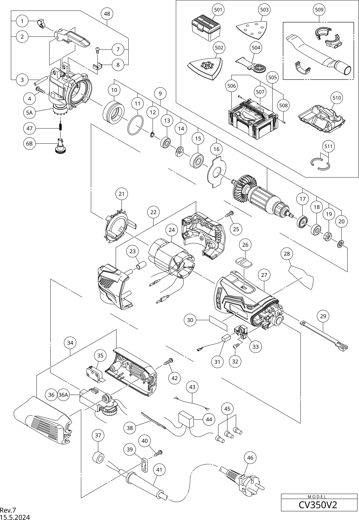 Lista de las piezas de repuesto de Hikoki CV350V2
