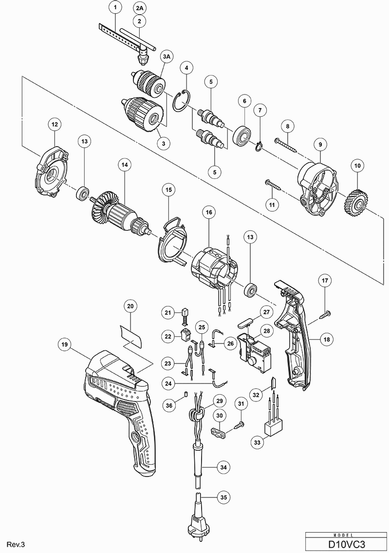 Lista de las piezas de repuesto de Hikoki D10VC3